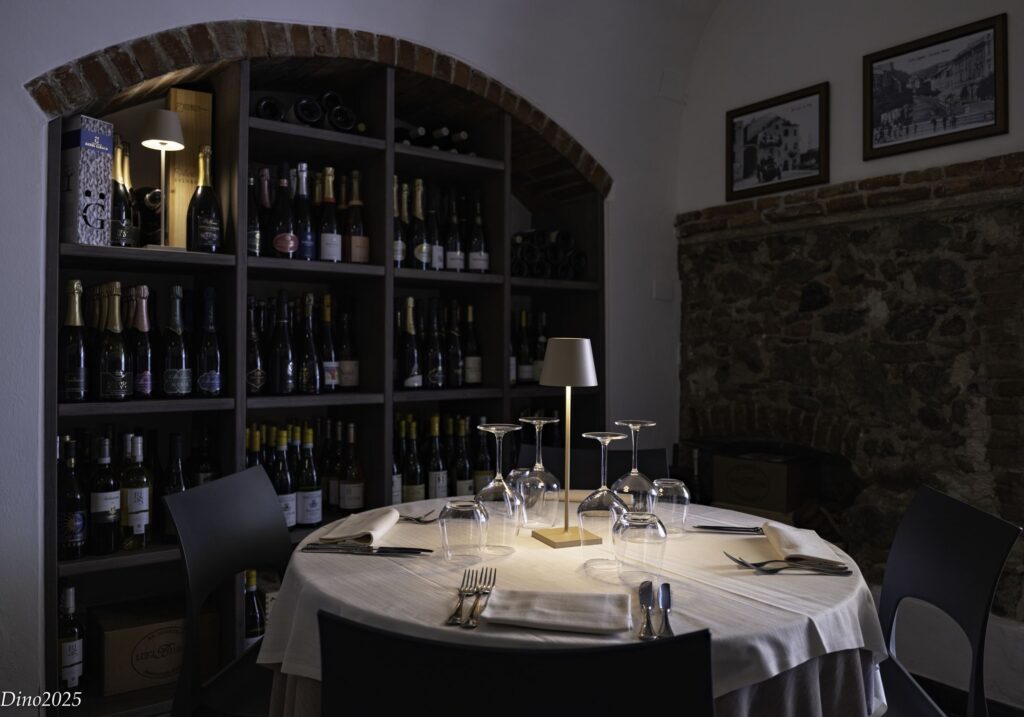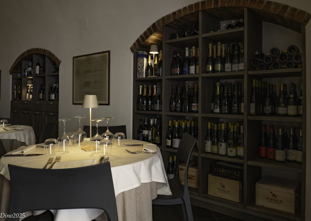Accanto ai vini del territorio c’è una selezione che spazia: dalle buone maison di champagne ai vini esteri, fino a etichette italiane che ci hanno convinto per qualità e carattere. La cantina cresce e cambia spesso, perché i vini li trattiamo come il menù — niente è fisso, tutto si evolve.